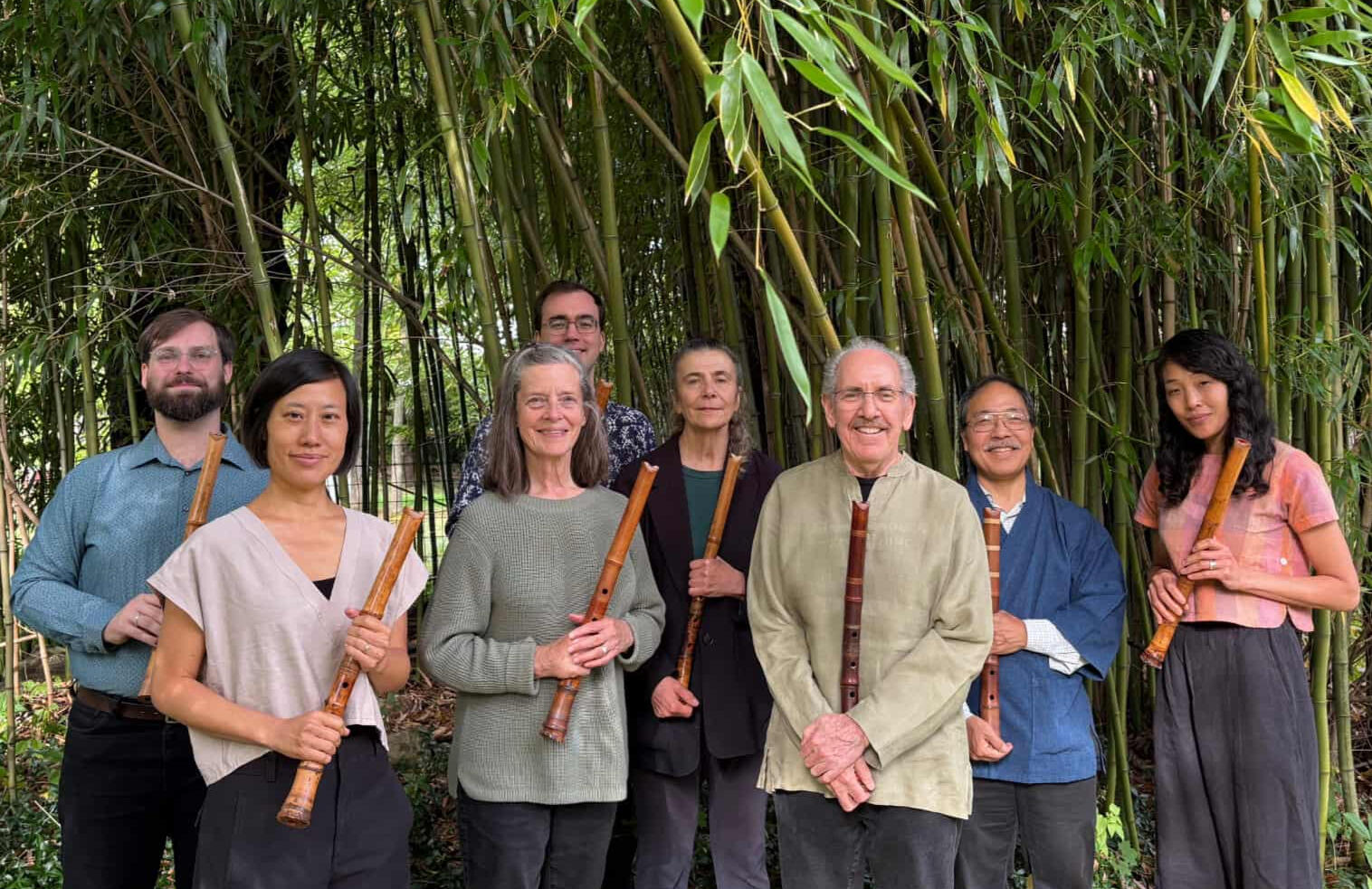 The Hudson Valley Shakuhachi Choir was formed in 2017 by Ralph Samuelson and Elizabeth Brown to explore the sonic possibilities arising from the instrument’s rich overtone texture expanded into a group setting. The choir consists of six to twelve players and the repertoire includes arrangements of traditional meditative solo pieces, min’yo (folk song), and new compositions created specifically for the ensemble; three of the group’s members have received Guggenheim Fellowships in composition.The choir’s schedule includes annual performances at Brooklyn Botanic Garden’s Hanami Nights and in Innisfree Gardens in the Hudson Valley, as part of Innisfree’s Gardens for Peace, an annual nationwide initiative in honor of the United Nations’ International Day of Peace. They have also performed at the Cathedral of St. John the Divine and in Basilica Hudson’s 24-hour Drone Festival.The shakuhachi is a vertical bamboo flute with a notched mouthpiece and five finger holes. It takes its name from the standard length of the instrument in traditional Japanese measuring units, 1 shaku 8 (hachi) sun. During the 17th, 18th, and early 19th centuries it was played by a sect of Buddhist monks as a form of spiritual practice, out of which developed a repertoire of solo pieces known as honkyoku (original/true music). It also joined the string instruments shamisen and koto (and voice) in the secular chamber ensemble, sankyoku (three instruments). Beginning in the early 20th century, after the introduction of European music to Japan, an ever-expanding repertoire of modern music was composed for the shakuhachi.The shakuhachi arrived in the United States with immigrants from Japan in the 19th century, but it was from the 1960s onward that the flute and its music began to spread significantly in this country and around the world. Today the shakuhachi is no longer specific to a particular country or historic era; it is very much a part of our contemporary, globalized musical landscape.