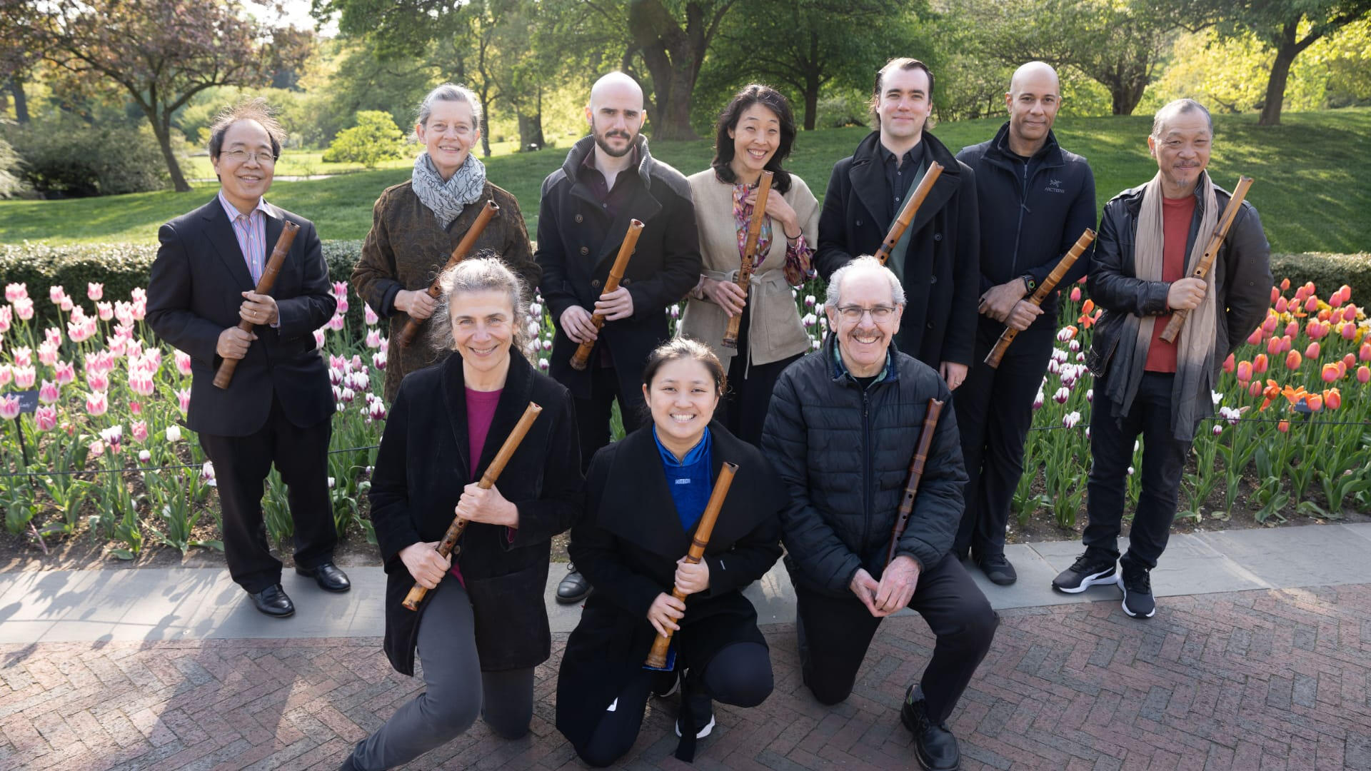 The Hudson Valley Shakuhachi Choir was formed in 2017 by Ralph Samuelson and Elizabeth Brown to explore the sonic possibilities arising from the instrument’s rich overtone texture expanded into a group setting. The choir consists of six to twelve players and the repertoire includes arrangements of traditional meditative solo pieces, min’yo (folk song), and new compositions created specifically for the ensemble; three of the group’s members have received Guggenheim Fellowships in composition.The choir’s schedule includes annual performances at Brooklyn Botanic Garden’s Hanami Nights and in Innisfree Gardens in the Hudson Valley, as part of Innisfree’s Gardens for Peace, an annual nationwide initiative in honor of the United Nations’ International Day of Peace. They have also performed at the Cathedral of St. John the Divine and in Basilica Hudson’s 24-hour Drone Festival.The shakuhachi is a vertical bamboo flute with a notched mouthpiece and five finger holes. It takes its name from the standard length of the instrument in traditional Japanese measuring units, 1 shaku 8 (hachi) sun. During the 17th, 18th, and early 19th centuries it was played by a sect of Buddhist monks as a form of spiritual practice, out of which developed a repertoire of solo pieces known as honkyoku (original/true music). It also joined the string instruments shamisen and koto (and voice) in the secular chamber ensemble, sankyoku (three instruments). Beginning in the early 20th century, after the introduction of European music to Japan, an ever-expanding repertoire of modern music was composed for the shakuhachi.The shakuhachi arrived in the United States with immigrants from Japan in the 19th century, but it was from the 1960s onward that the flute and its music began to spread significantly in this country and around the world. Today the shakuhachi is no longer specific to a particular country or historic era; it is very much a part of our contemporary, globalized musical landscape.